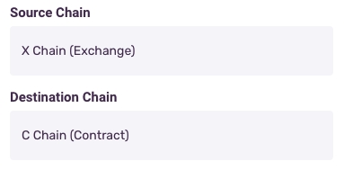 3. Choose "C Chain (Contract)" as your destination chain, which is compatible with smart contracts. Make sure you follow this step precisely, otherwise you will not be able to continue using our platform.