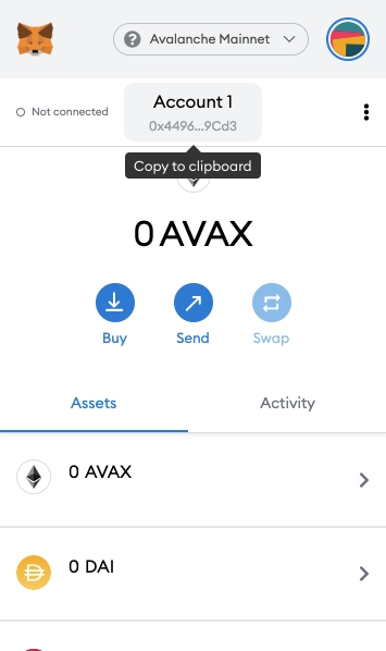 Step 2 Transfer some AVAX to the MetaMask wallet that’s connected to the Avalanche network. For this: