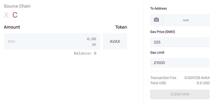 7. Enter your MetaMask wallet address in the "To Address" field in the Avalanche wallet.